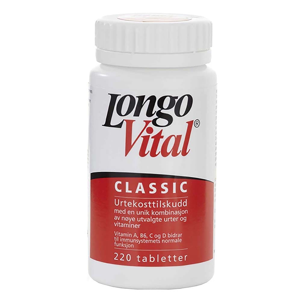 Longo Vital Classic er en vitamintablett med litt ekstra, fordi den både inneholder en lang rekke viktige vitaminer og seks utvalgte urter, som samlet sett vedlikeholder immunsystemet. 399 kr for 220 tabletter.