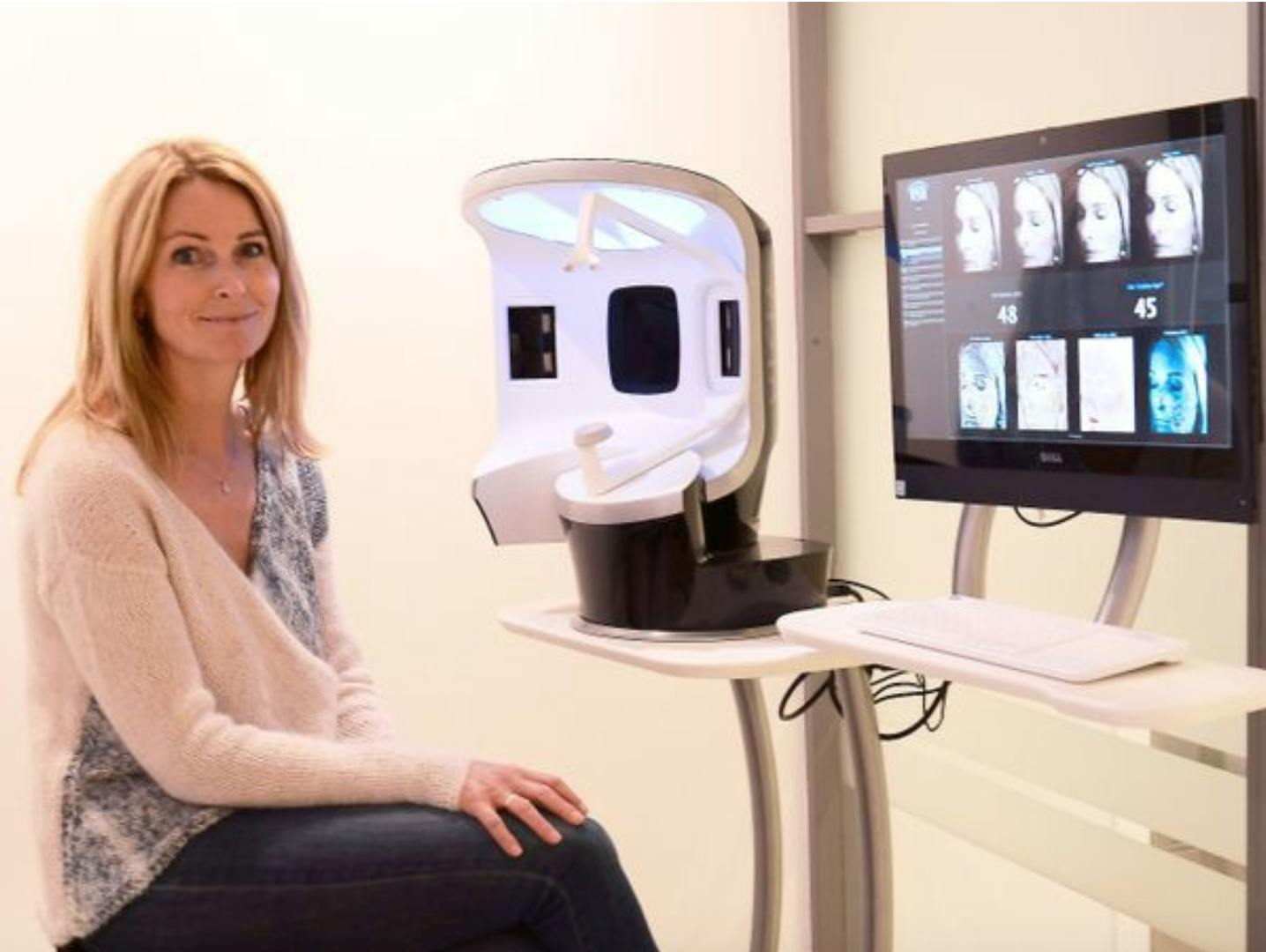 – Huden i ansiktet ble skannet før vi begynte og etter åtte uker, og denne viste reduksjon i rykedybde, særlig rundt øynene. Jeg ser også stor forskjell på de grove og dype linjene rundt munnen og sinnarynkene er mindre tydelige. Alt i alt kjennes huden i ansiktet fastere og mer spenstig, sier hun.