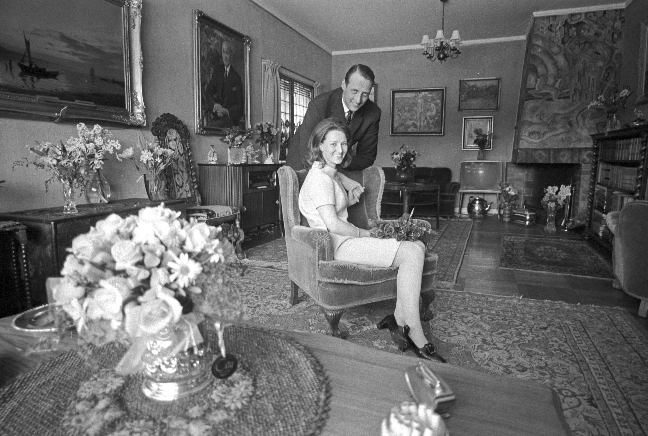Hun møtte kronprinsen allerede i 1959, men det unge paret måtte vente i ni år før de fikk kong Olavs tillatelse til å gifte seg. Hjørneværelset i andre etasje betydde noe helt spesielt for den unge Sonja Haraldsen. Det var her hun kunne gå inn og være helt for seg selv.