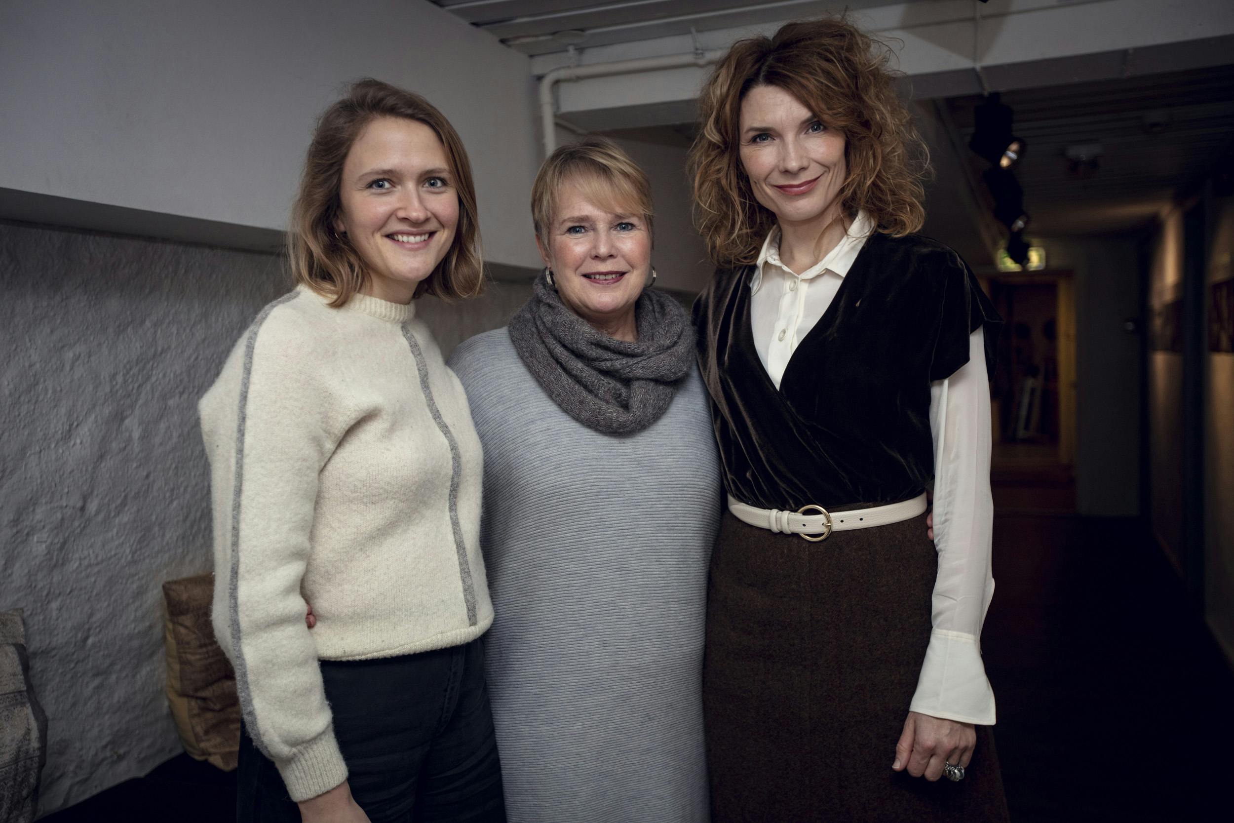 Tre ivrige og snakkeglade damer drikker lunken farris og pappbegerkaffe i skuespillerfoajeen på Oslo Nye Teater. De representerer hver sin generasjon både på scenen og i det virkelige livet. De to eldste har riktignok roller som både med ett og flere tiår overgår deres egen alder. Med sine 61 år har Birgitte Victoria Svendsen et kvart hundreår igjen før hun er på alder med Mias mamma på 87 år. Hun er Den eldre i stykket. Den middelaldrende Herborg Kråkevik er bare ti år yngre enn Mias 57 år. Mari Dahl Sæther på 31 år, Den unge, får derimot leke seg tilbake til begynnelsen av 20-årene i rollen som Mias datter Daisy. Men hun spiller også småbarnsmamma, en krumbøyd 97-åring og en mobbende tenåringsjente.