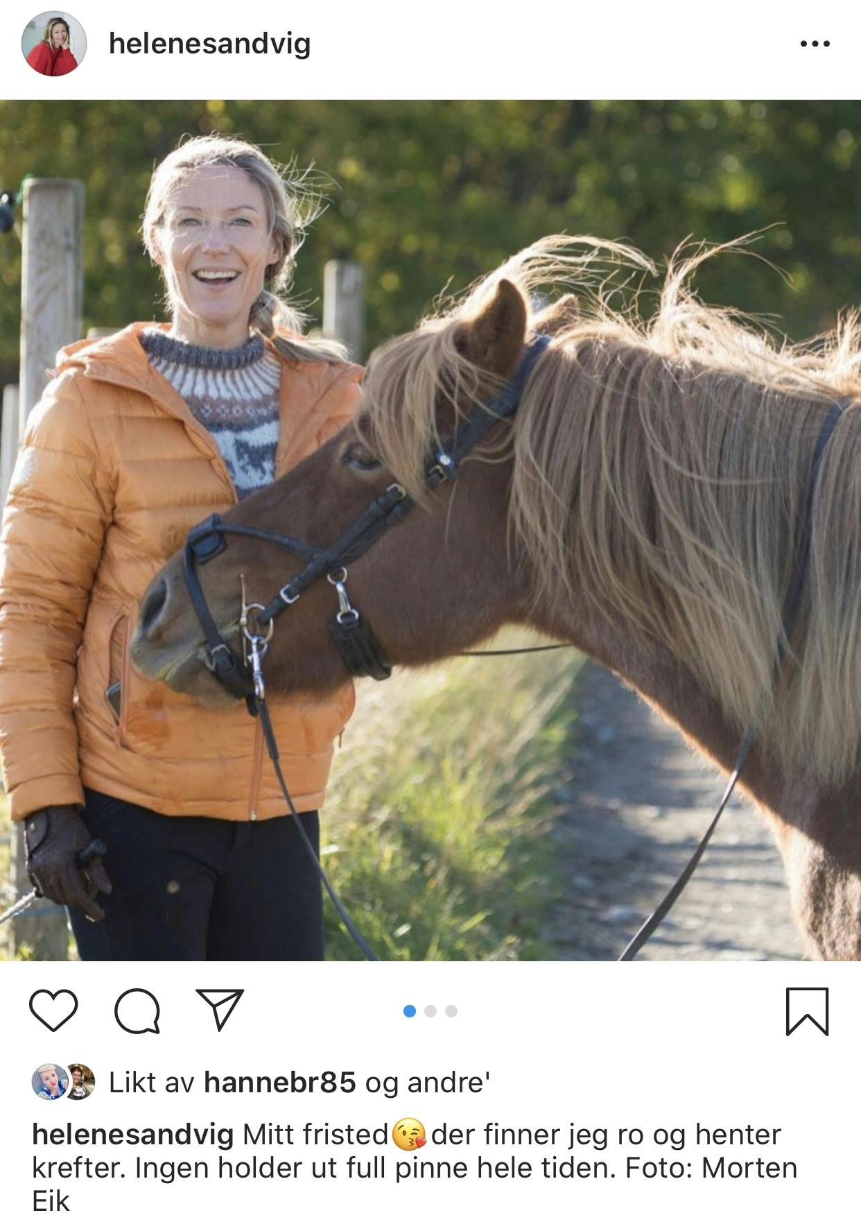 – Jeg har vært mer i stallen enn jeg pleier. Kostet, spadd møkk, stelt med hestene. Det har vært en deilig frihetsfølelse disse ukene selv om jeg har jobbet.