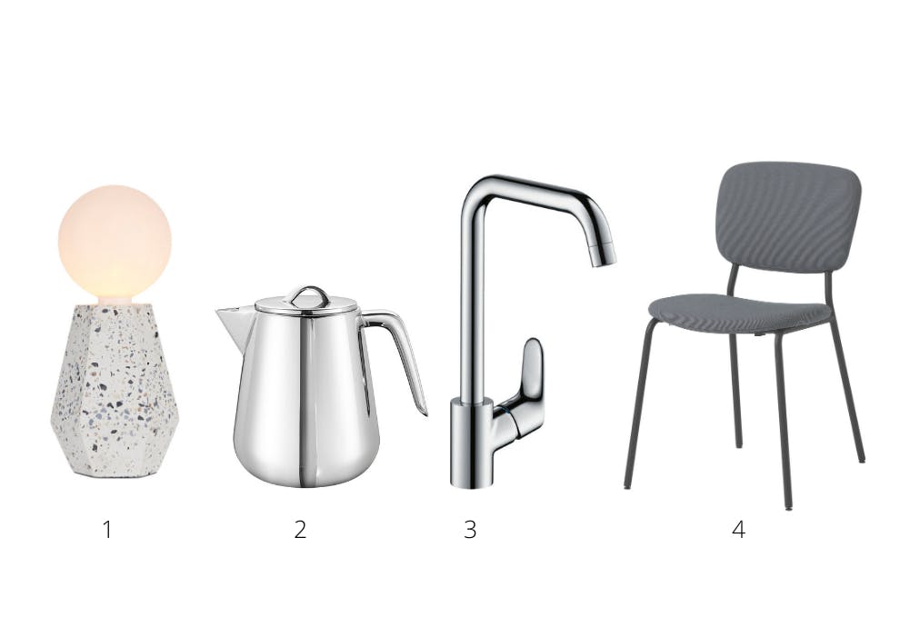 1. Zoe bordlampe i terrazzo fra Ellos.no, H 15, Ø 12 cm, 449 kr.
