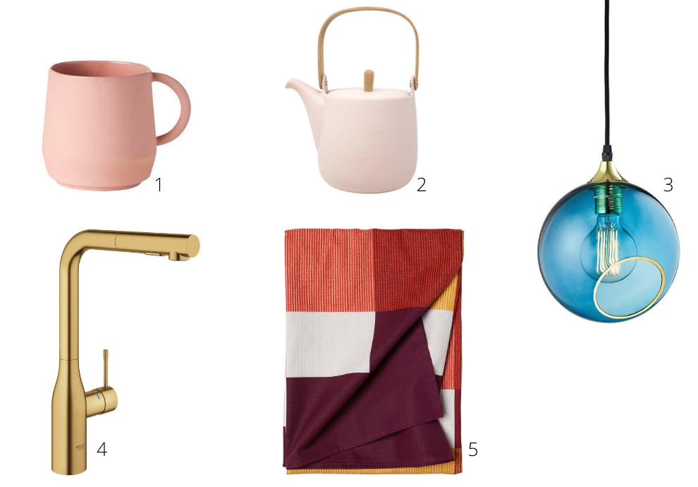 3. Kopp, 99 kr, skål, 99 kr, dyp tallerken, 219 kr, brett, 349 kr, alt fra HK Living.