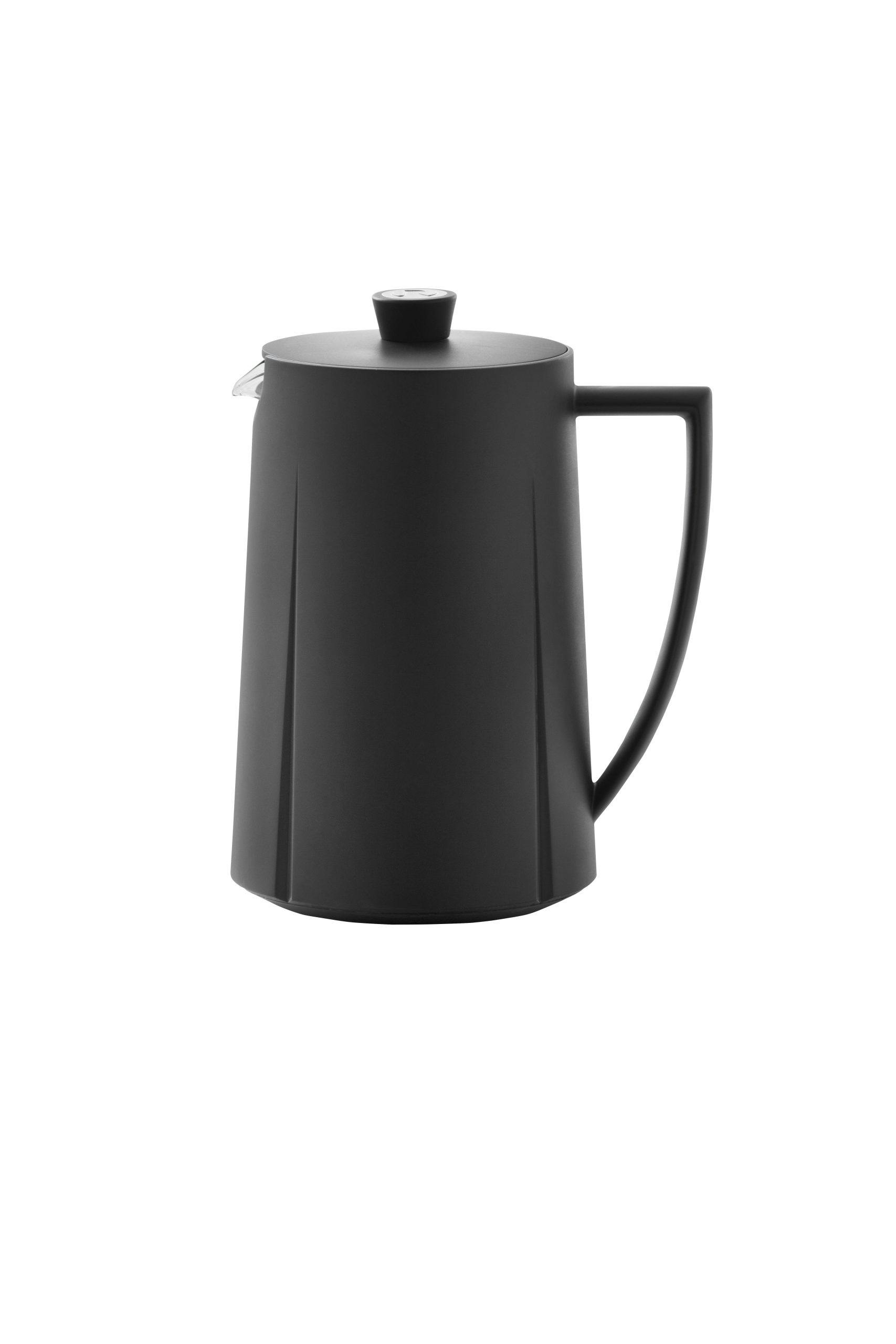 Lekker presskanne fra Rosendahls Grand Cru-serie laget av sort plast med en innvendig glasskanne som tåler oppvaskmaskin. Ha i nykvernet kaffe og kokende vann, la stå i noen mintter, press stempelet ned og du har 8 kopper deilig kaffe. 1 liter, 549 kr.