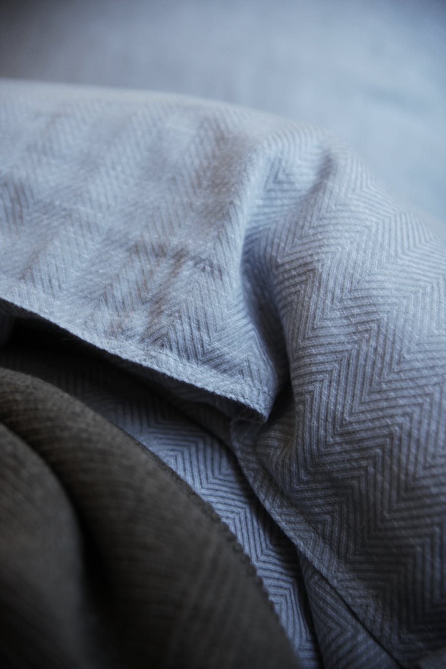 — Olava er laget av en blanding av lin og bomull, det er vakkert vevet og i en fin grå farge. Sengetøyet er steinvasket for ekstra mykhet. Det strikkede pleddet K2 i 100% ull er mykt og lunt og det brune pleddet sammen med alt det grå er min favorittmiks akkurat nå. Naturlig samtidig som det er elegant. **