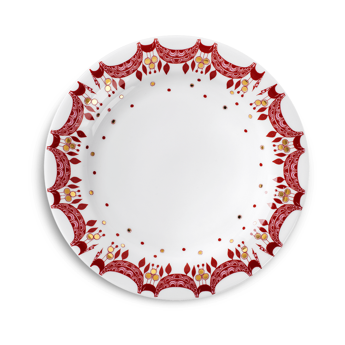 Juleserviset fra Bjørn Wiinblads fantasifulle univers består av alt du trenger for å dekke et vakkert og magisk julebord i rødt, hvitt og gull, fra tallerkener, skåler, serveringsfat- og boller og krus i tillegg til sausekanne og salt- og pepperbøsse som er nytt i år. Juletallerken, Ø 20 cm, 169 kr.