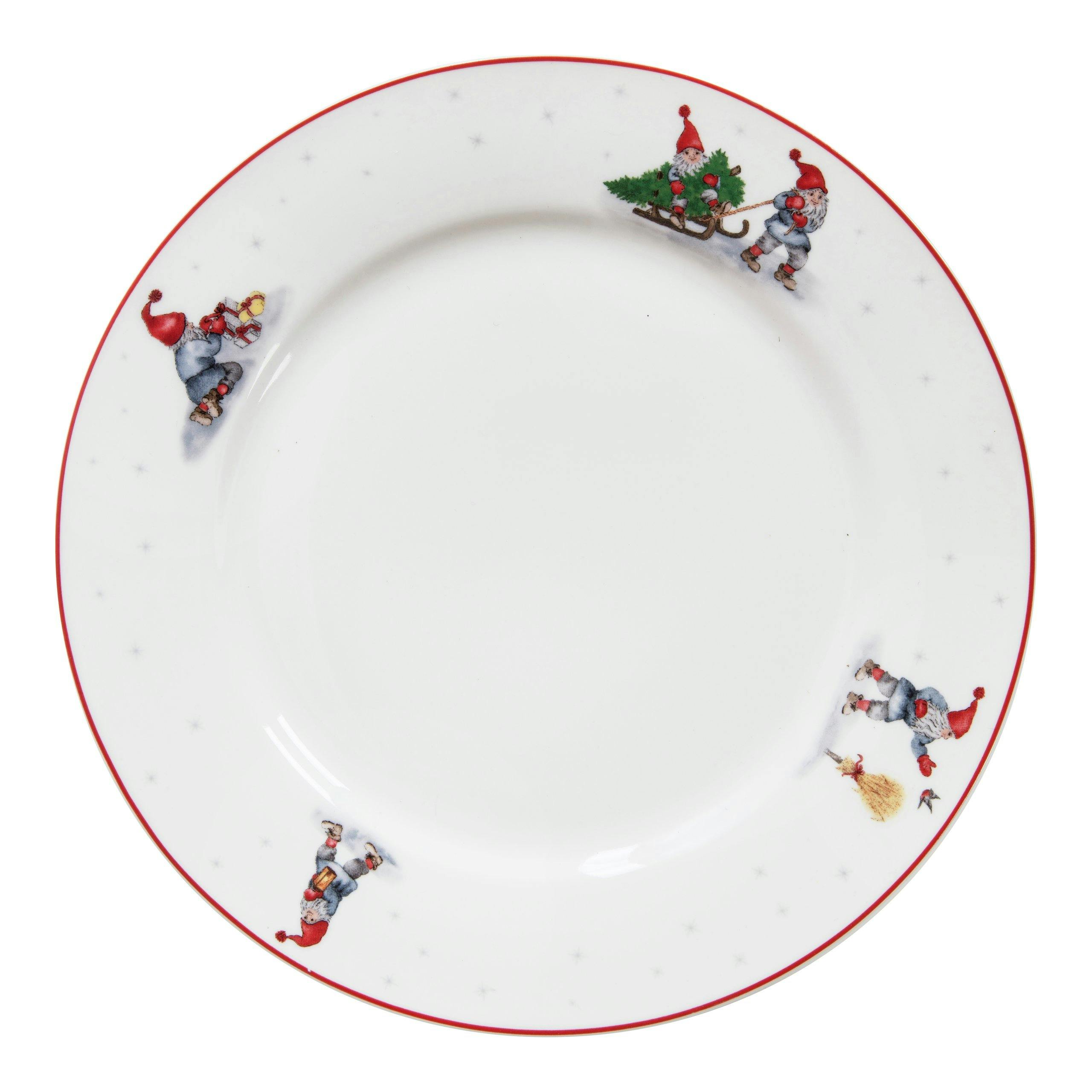 Tallerken, kopp, krus, bolle, asjett, servietter, salt- og pepperbøsse, serveringsfat og serveringsbolle med koselig julemotiv finner du til en billig penge hos Nille. God Jul middagstallerken, Ø 27 cm, 49,95 kr.