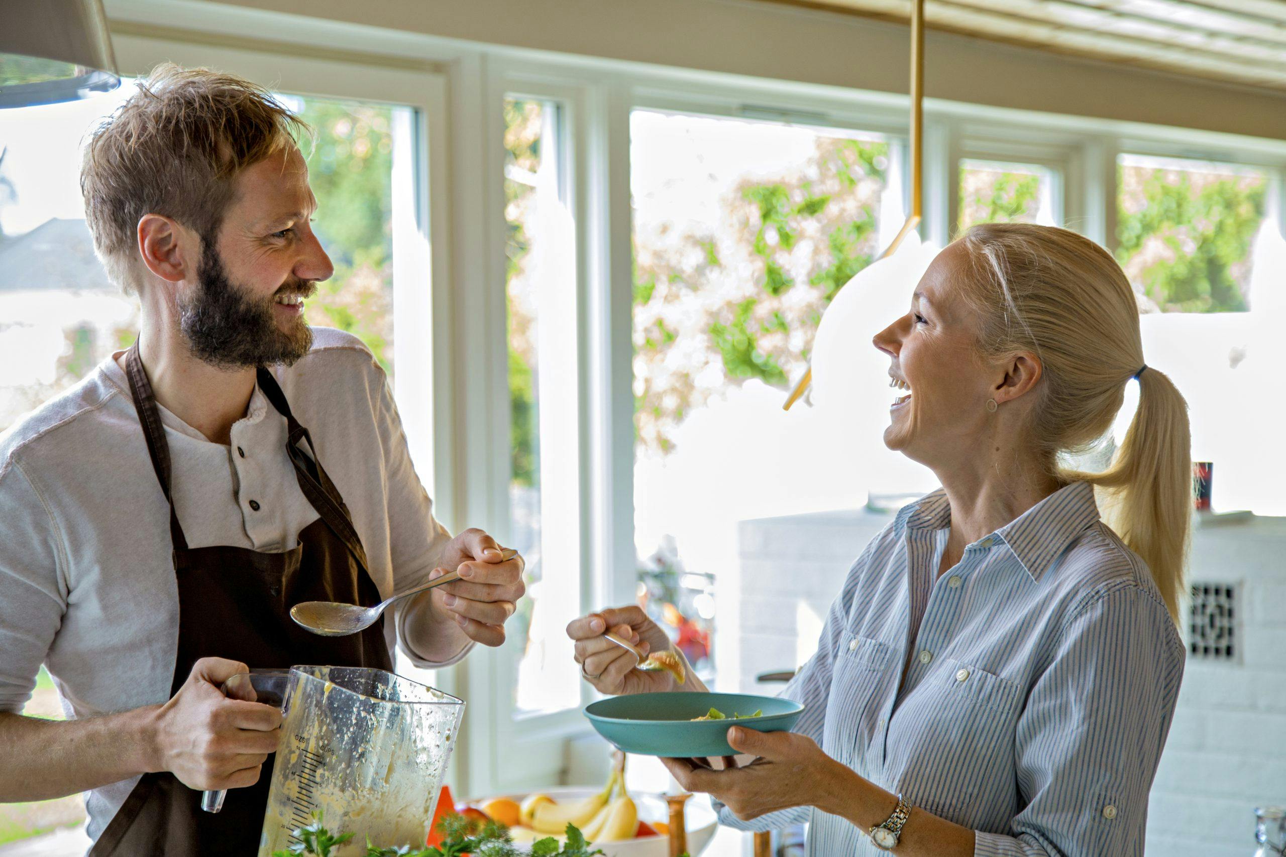 – Det er viktig å kose seg med maten, roe seg ned, dekke fint på bordet og ha et hyggelig måltid. Hos oss er klokken gjerne 20 før vi spiser middag. Lag heller litt enkel kveldsmat før trening, så samles alle til middag senere på kvelden, anbefaler hun.