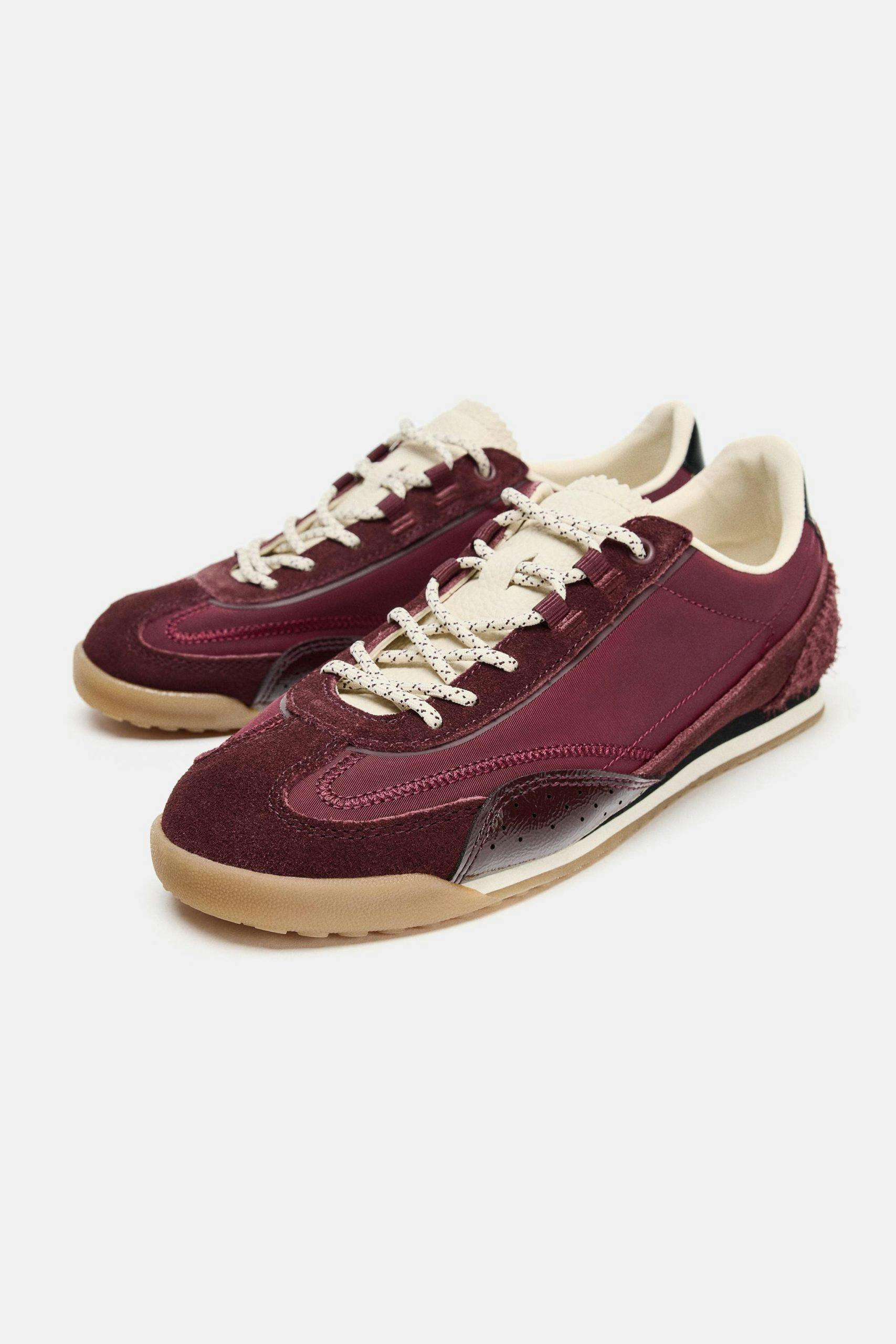 Sneakers i en trendy burgunderfarge er et trygt valg når du skal kjøpe nye sko. De passer også perfekt utover høsten. Disse fra Zara og koster 499 kr.