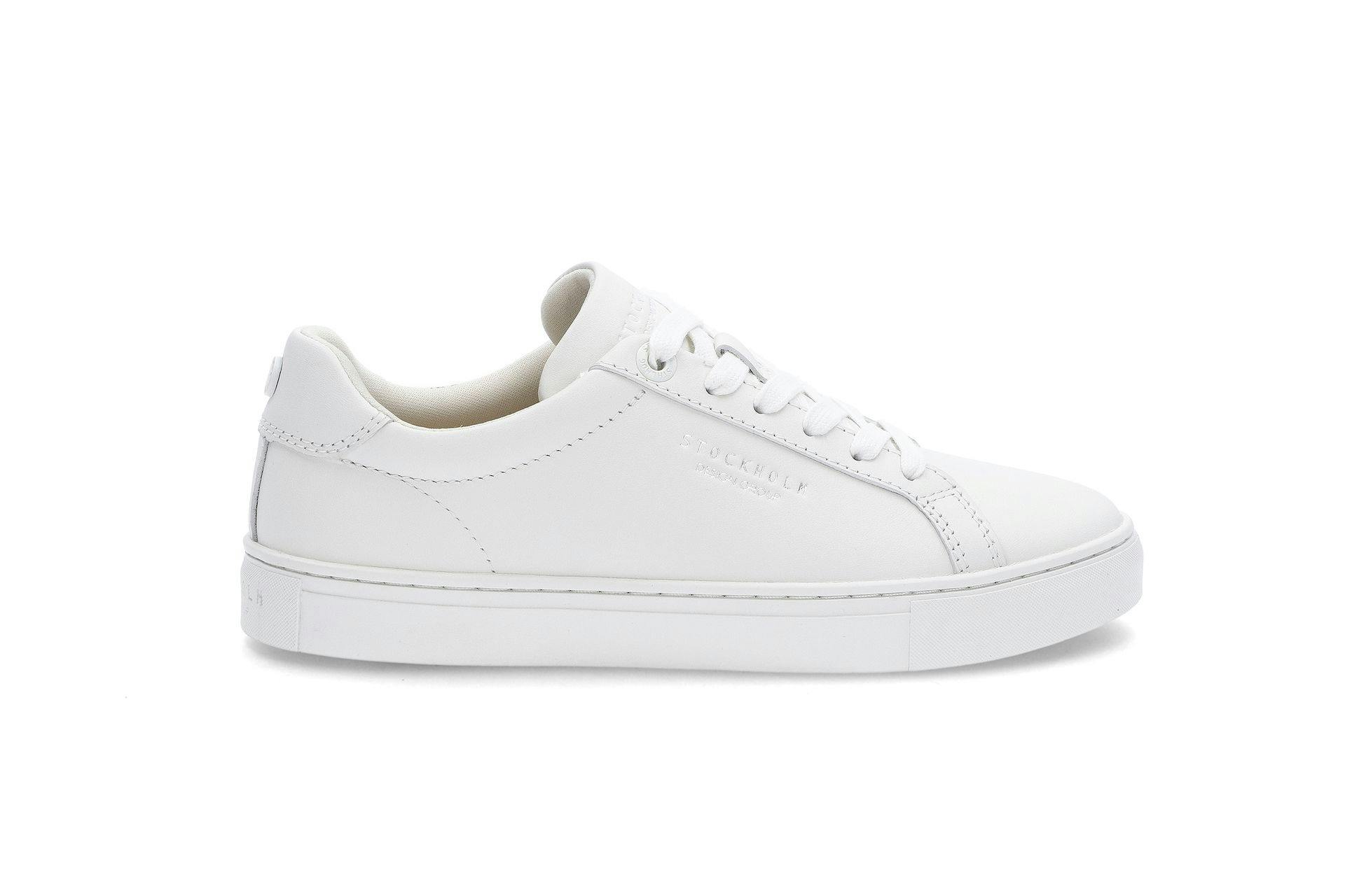 Sneakersene fra Stockholm Design Group har et klassisk uttrykk i hvitt skin, prisen er 1.399 kr.