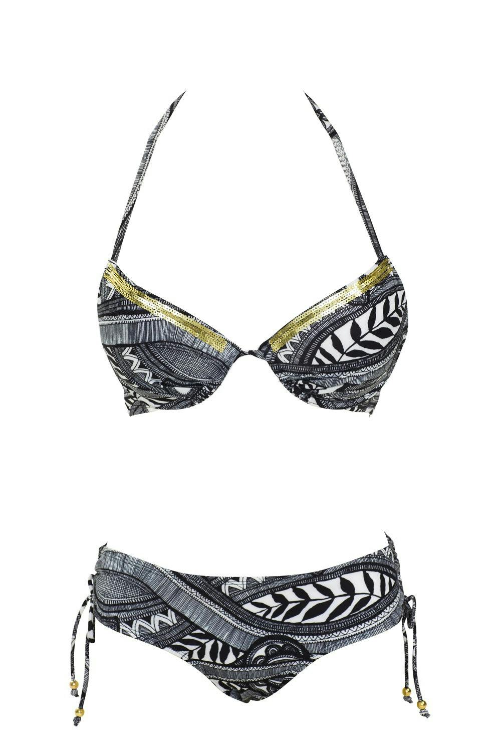 Mønstrete bikini med gullpaljetter fra KappAhl, kr 149/129.