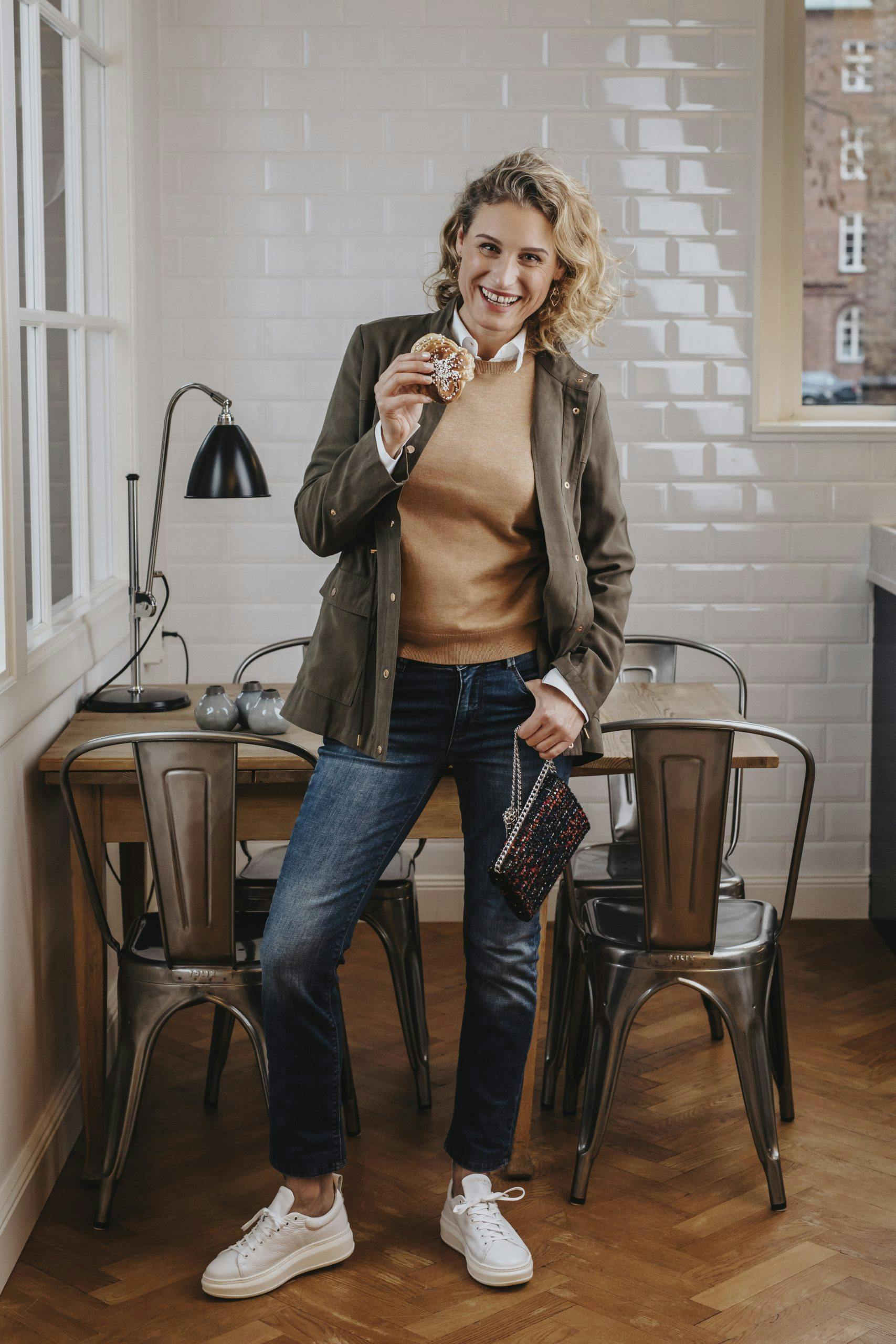 En del farger oppfattes som mer tidløse. Kamelfargede plagg for eksempel. Tenk bare på den ikoniske kamelfargede frakken! Det peneste stiltipset er å matche genserfargen med fargen på jeanssømmen.