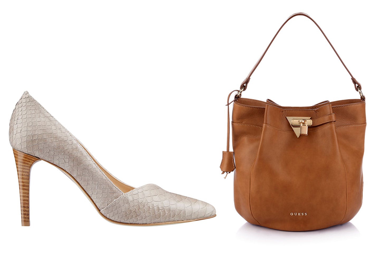Bøttevesken er sesongens nye it-veske. Den vil dukke opp i mange variasjoner og prisklasser. Baggy skulderveske fra Guess Accessories, kr 2800.