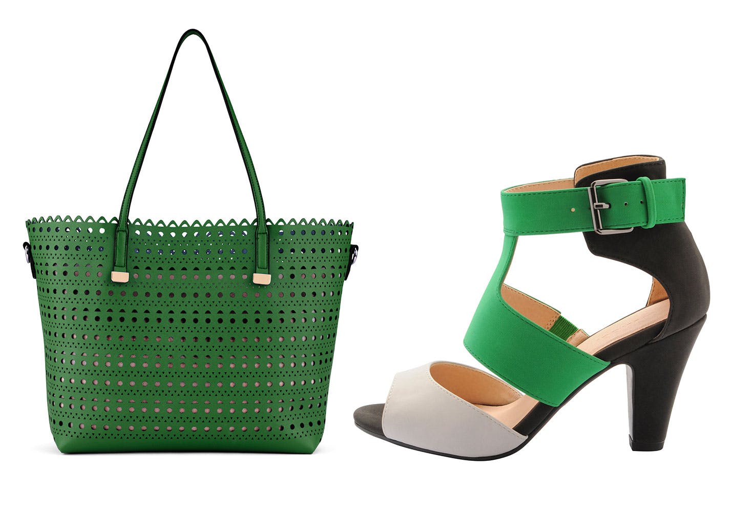 Såkalte «cut outs», prikker og hull, er stikkord verdt å merke seg for sesongen. Grønn veske fra Aldo, kr 399.