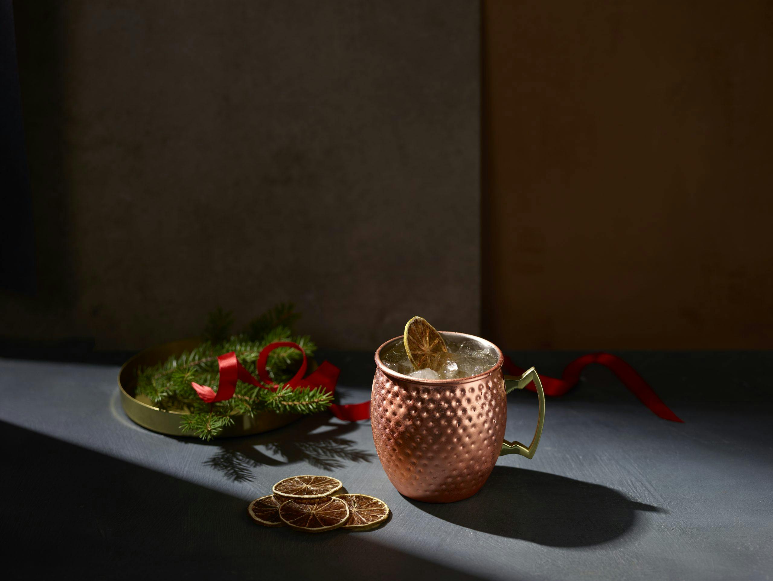 Slik gjør du: Bland sammen akevitt, limesaft, mandarinsirup og bitter i et mule-krus. Ha deretter i is og topp med ginger beer. Rør lett sammen og server. Pynt gjerne med en tørket limeskive eller en mandarinbåt.