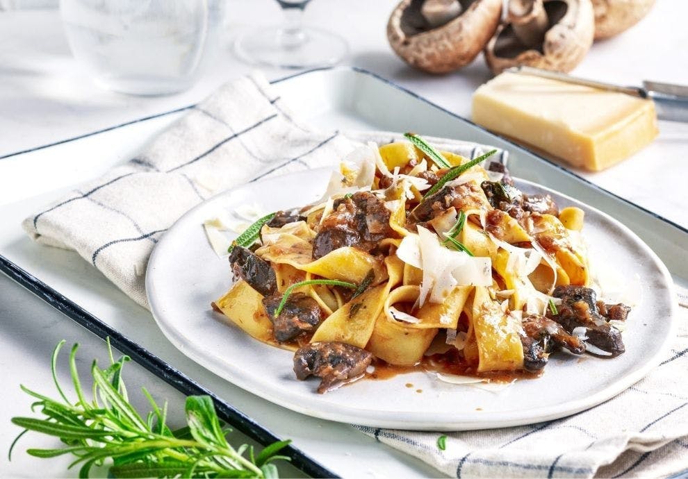 13. Pasta med portobelloragú, soltørkede tomater og parmesan