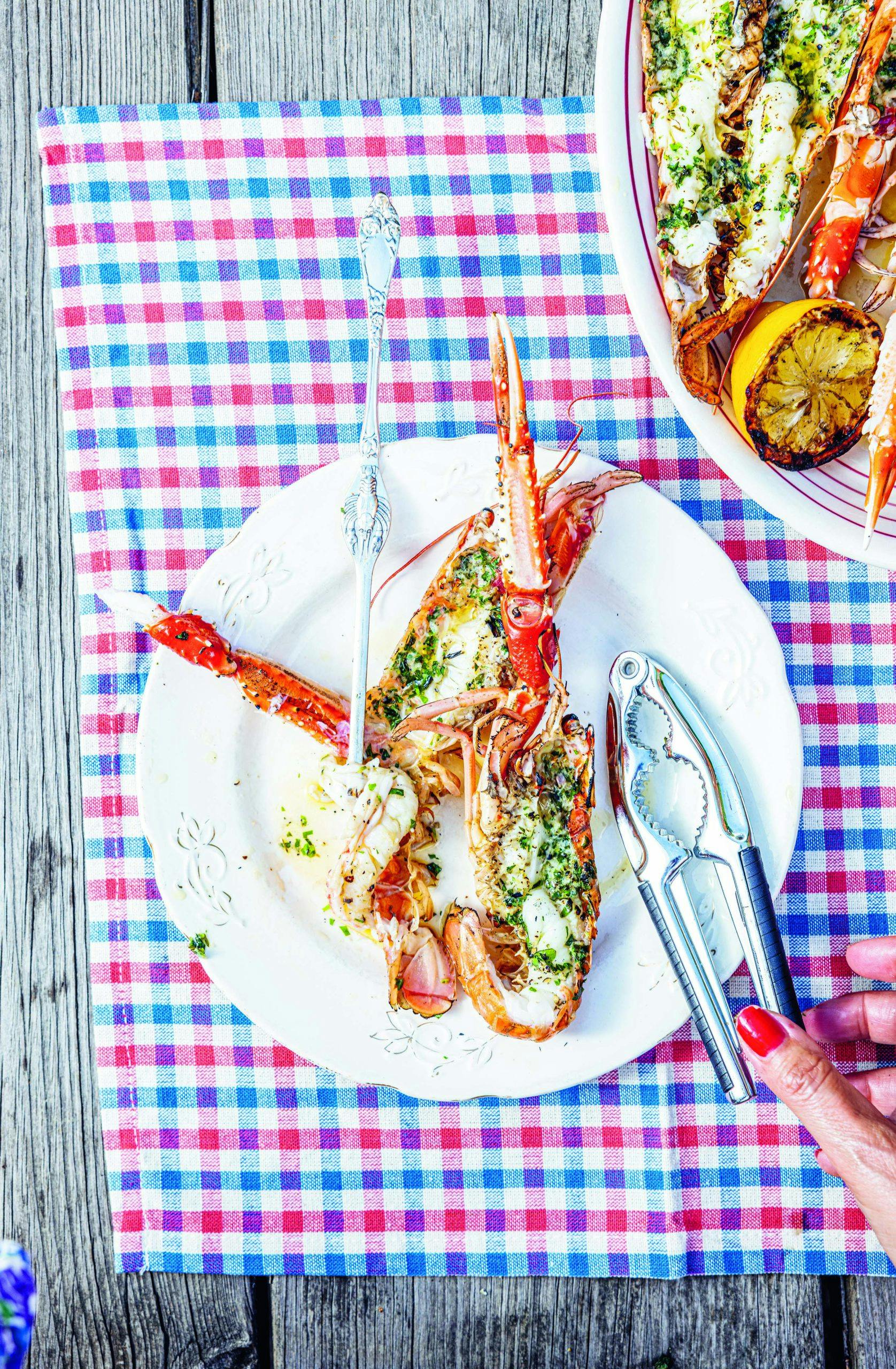 Krydre kjøttet lett med salt og kvernet pepper. Fordel smøret på krepsekjøttet og legg krepsen på varm grill med skallet ned. (Lag ev. et brett av dobbelt lag aluminiumsfolie som krepsen kan ligge på på grillen. Da slipper du uventede flammer hvis smøret drypper ned på kullet. Bretter du i tillegg en kant rundt på folien, vil du ta vare på all kraft og smør som pipler og bobler opp fra krepsen underveis. På den annen side vil du miste litt av den karamelliserte smak- en av grillet krepseskall.)
