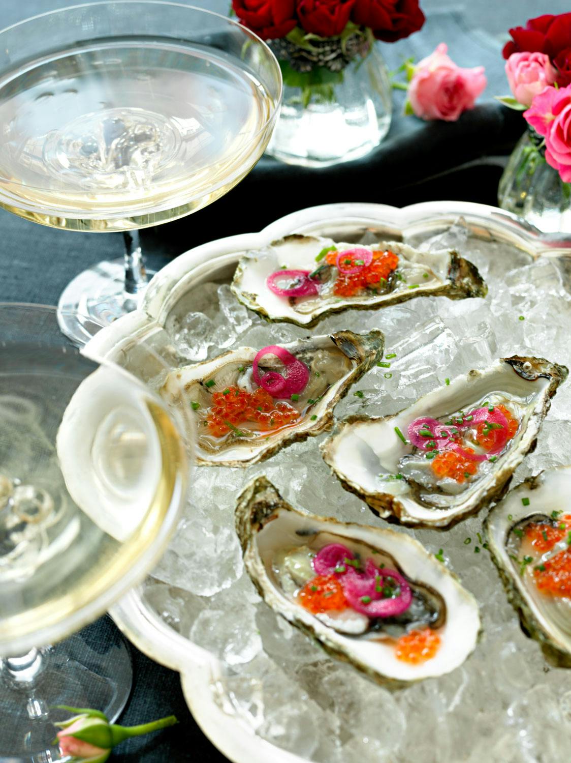 Østers, kaviar, hummer, safran og sjokolade - alle er de forførende råvarer i denne romantiske menyen. Østers pleier man å kalle et afrodisiakum - et middel som fremkaller lyst - på grunn av østersens høye innhold av sink. Sink er nemlig viktig for å opprettholde eller forhøye nivået av testosteron. Også rogn - her i form av lakserogn eller Limfjordkaviar - er rik på sink.