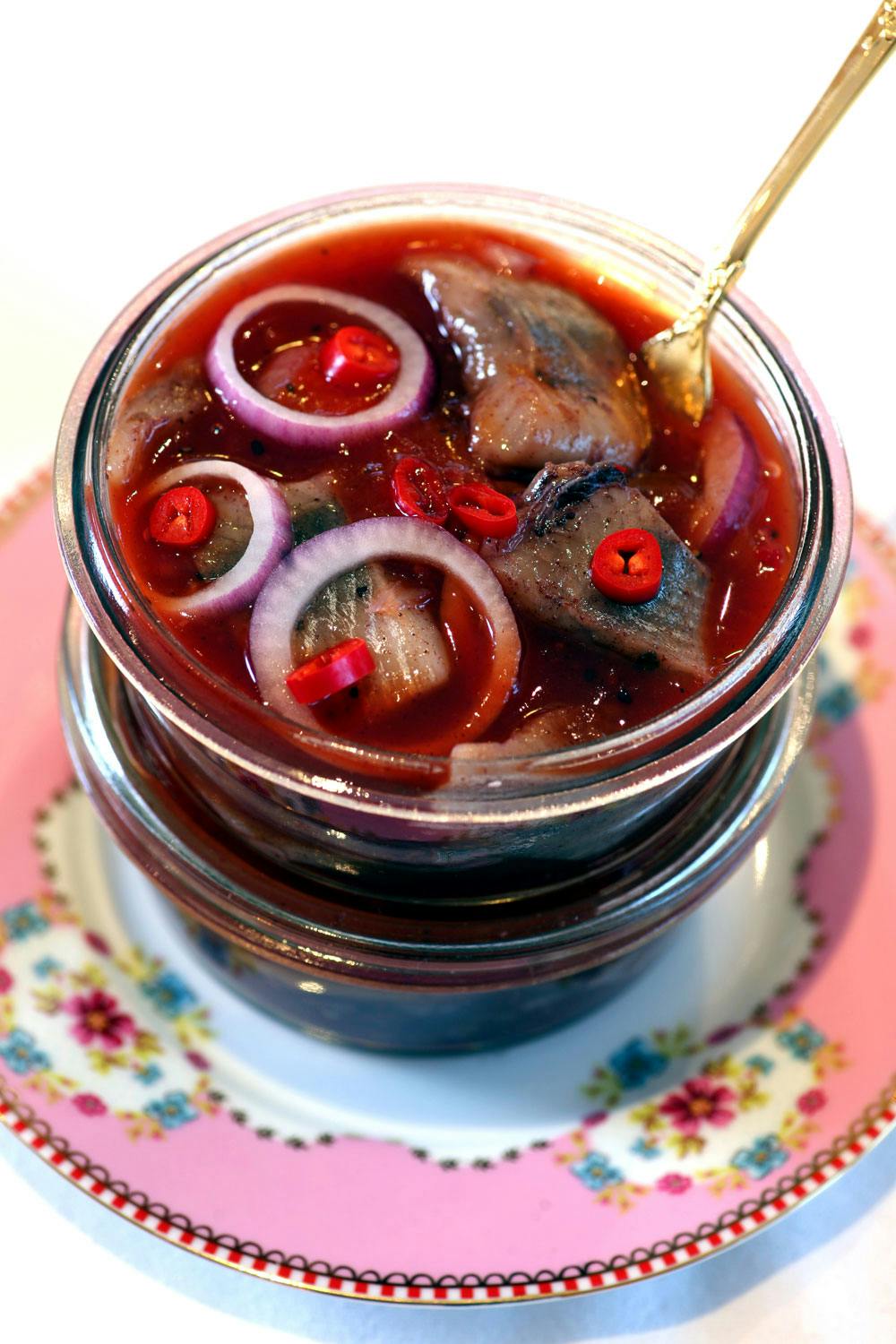 1. Ha eggehakk, eggeplomme og sennep i en bolle. Visp forsiktig nedi oljen litt av gangen.