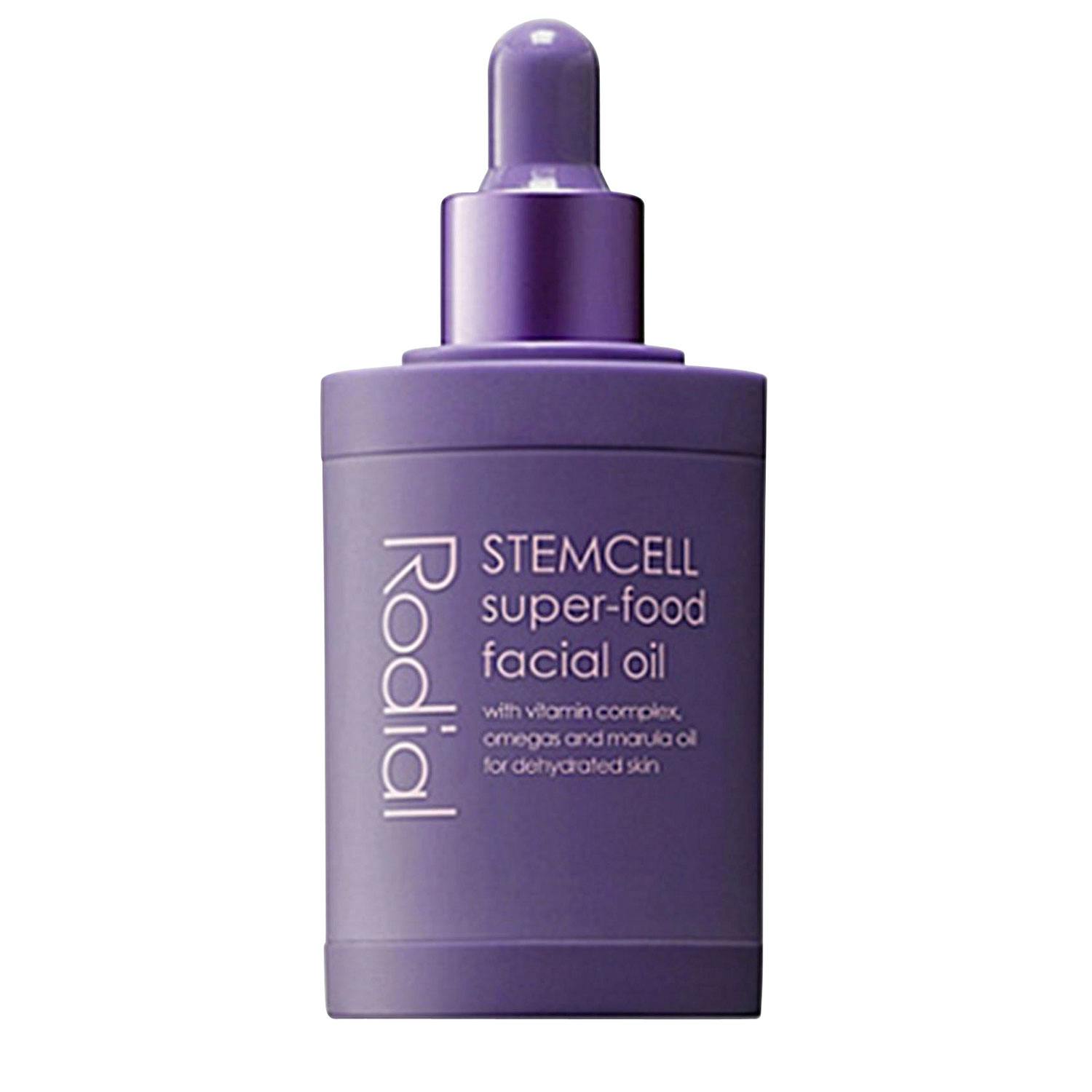 Intens pleie og næring til huden med omega 3-, 6- og 9-oljer, marulaolje, vitamin A, B5, C og E samt PhytoCell Alperose-stamceller som stimulerer hudens stamceller til å fornye seg. Stemcell SuperFood Facial Oil, 30 ml, kr 490 (Rodial).