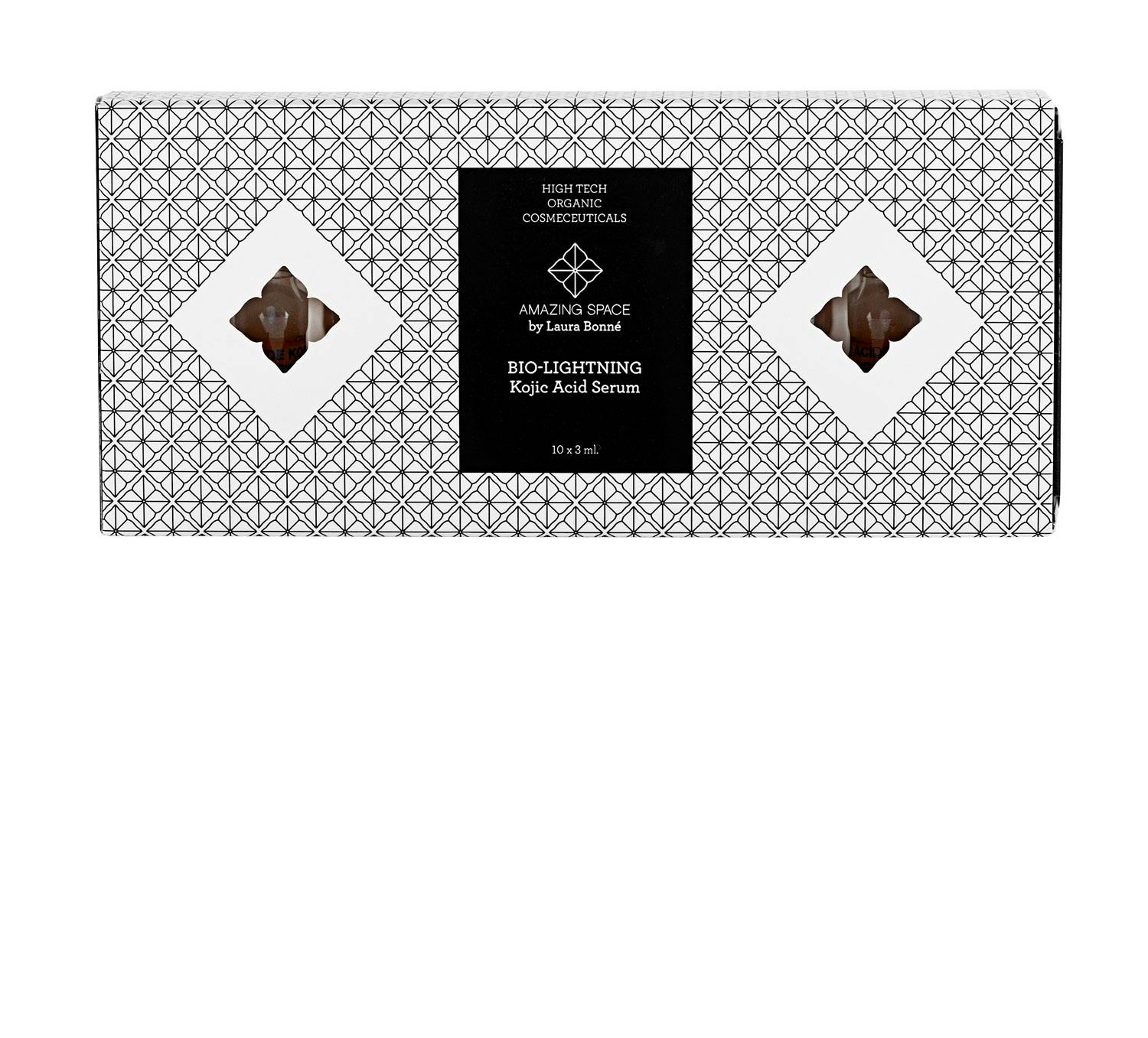 Kojic-syre lysner huden, demper pigmentforandringer, arr og strekkmerker. Brukes i 6-8 uker direkte på huden eller blandet med krem/serum. Bio-Lightning Kojic Acid, 10 ampuller,