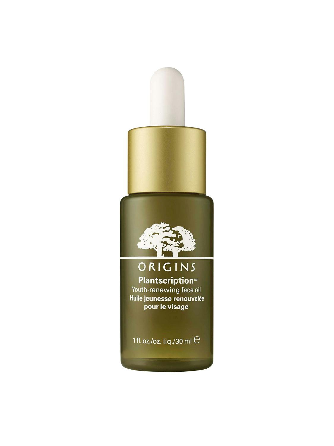 Olje som fyller opp manglende fettstoffer. Med oljer fra solsikke, aprikoskjerne, argan, oliven og nyperoser. Bruk etter serum, før krem. Plantscription Youth-Renewing Face Oil, 30 ml, kr 480 (Origins).