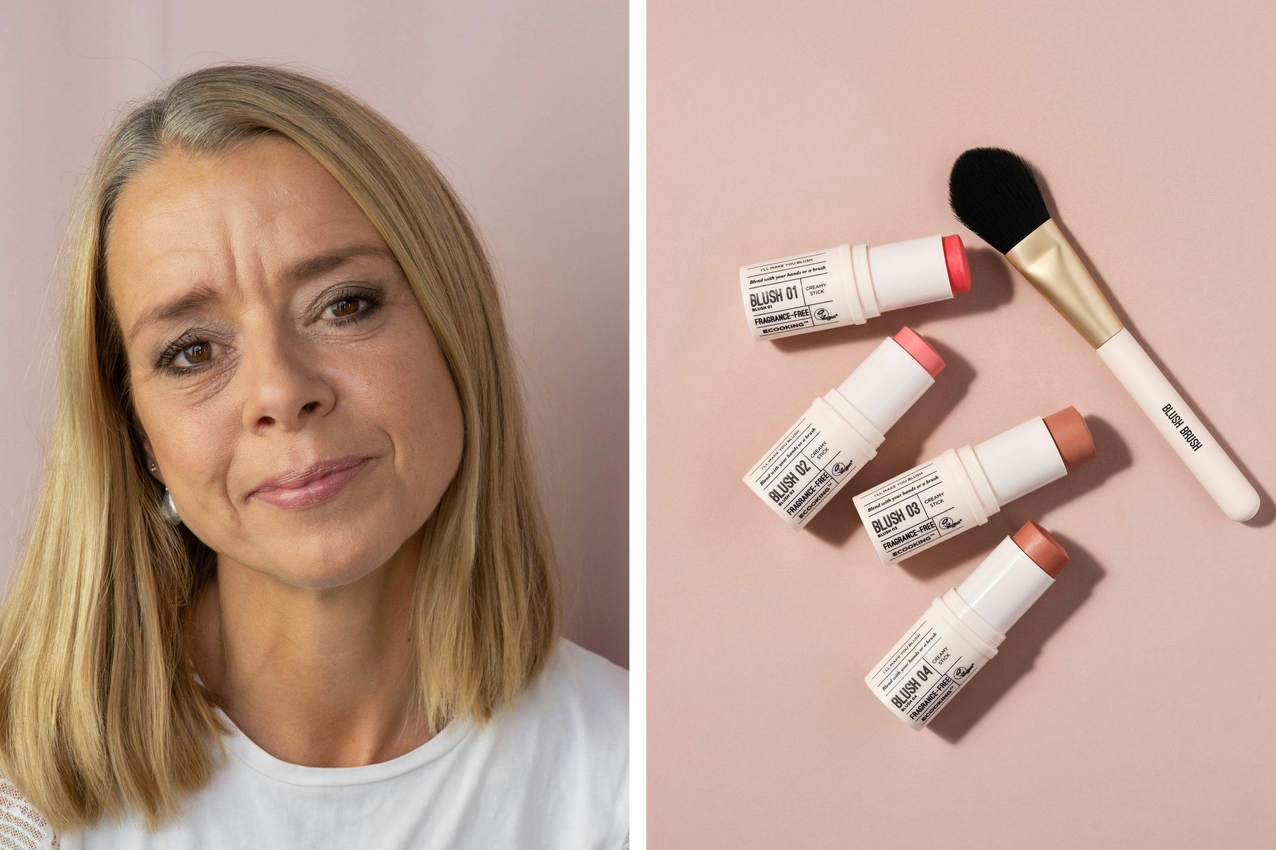 For å løfte kinnene enda mer, og gi ansiktet varme, bruker vi Blush. Ecooking har en kremaktig blush stick, som er genial for erfaren hud, da teksturen smelter naturlig inn i huden uten å legge seg i fine linjer.