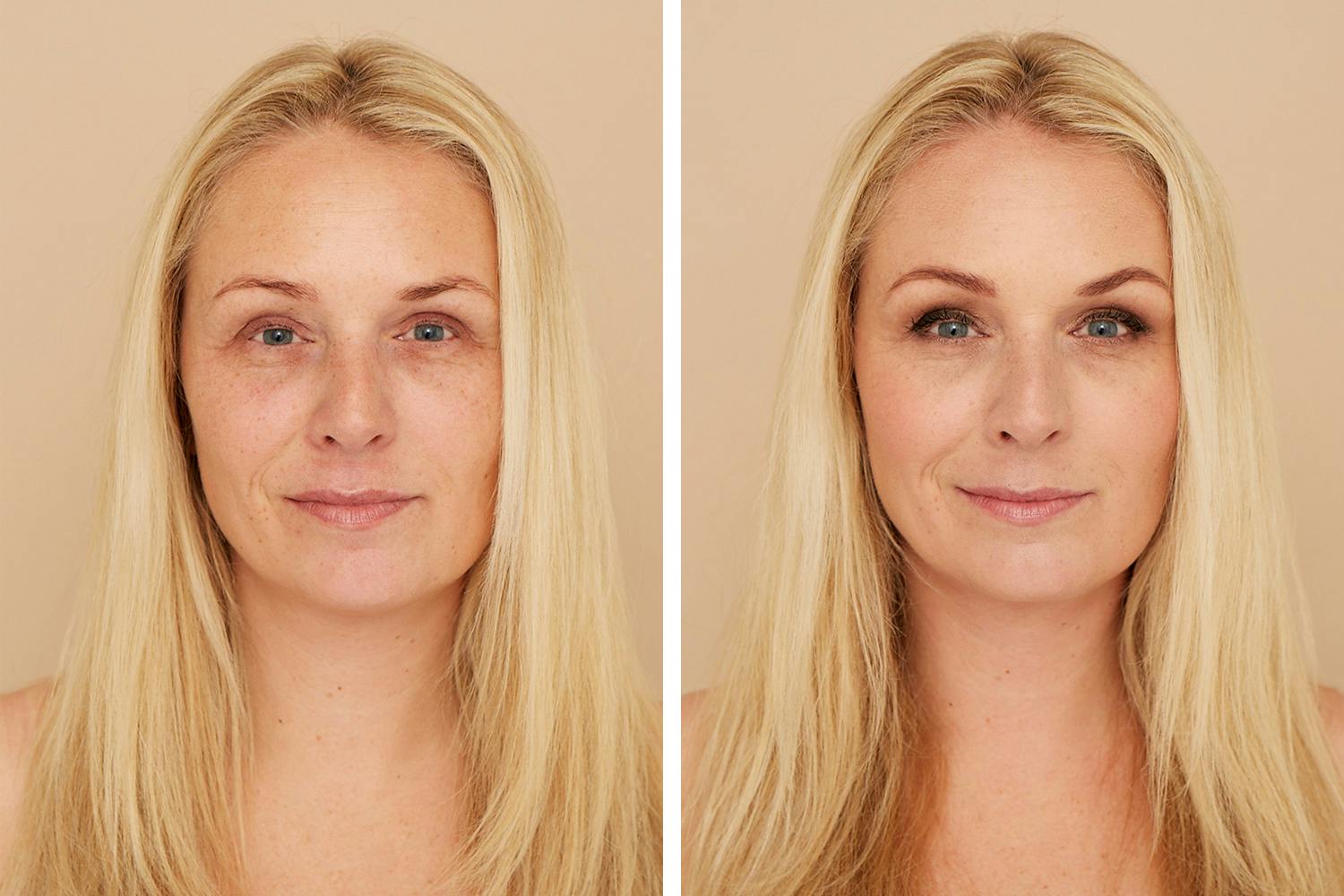 Ursula Gerstrup Bundgaard (44) er blond med lyse farger. Ved å forsterke øyenbryn og lepper fikk hun intensivert sine vakre øyne.