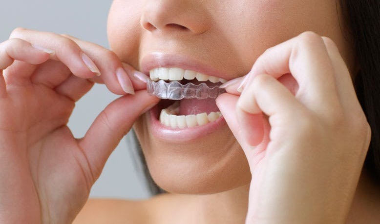 - Først tar tannlegen en avstøping av tennene dine, og så lager han en plastskinne som passer tennene i over- og underkjeven.