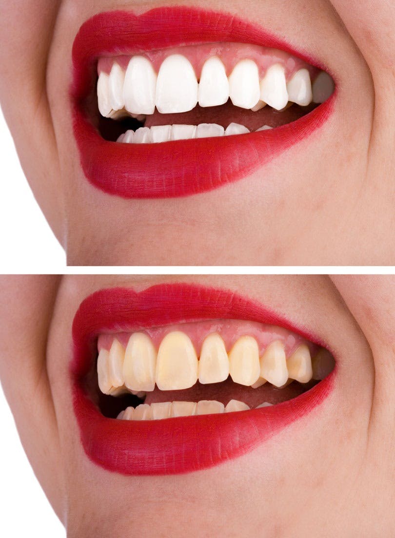 - Hvis du farger tennene dine på egenhånd er det viktig å holde seg unna enkelte fargestoffer i mat og drikke mens prosedyren pågår. Kaffe, te, rødvin, cola, rødbeter og tomatsaus er eksempler på mat du bør unngå - og selvfølgelig nikotin.