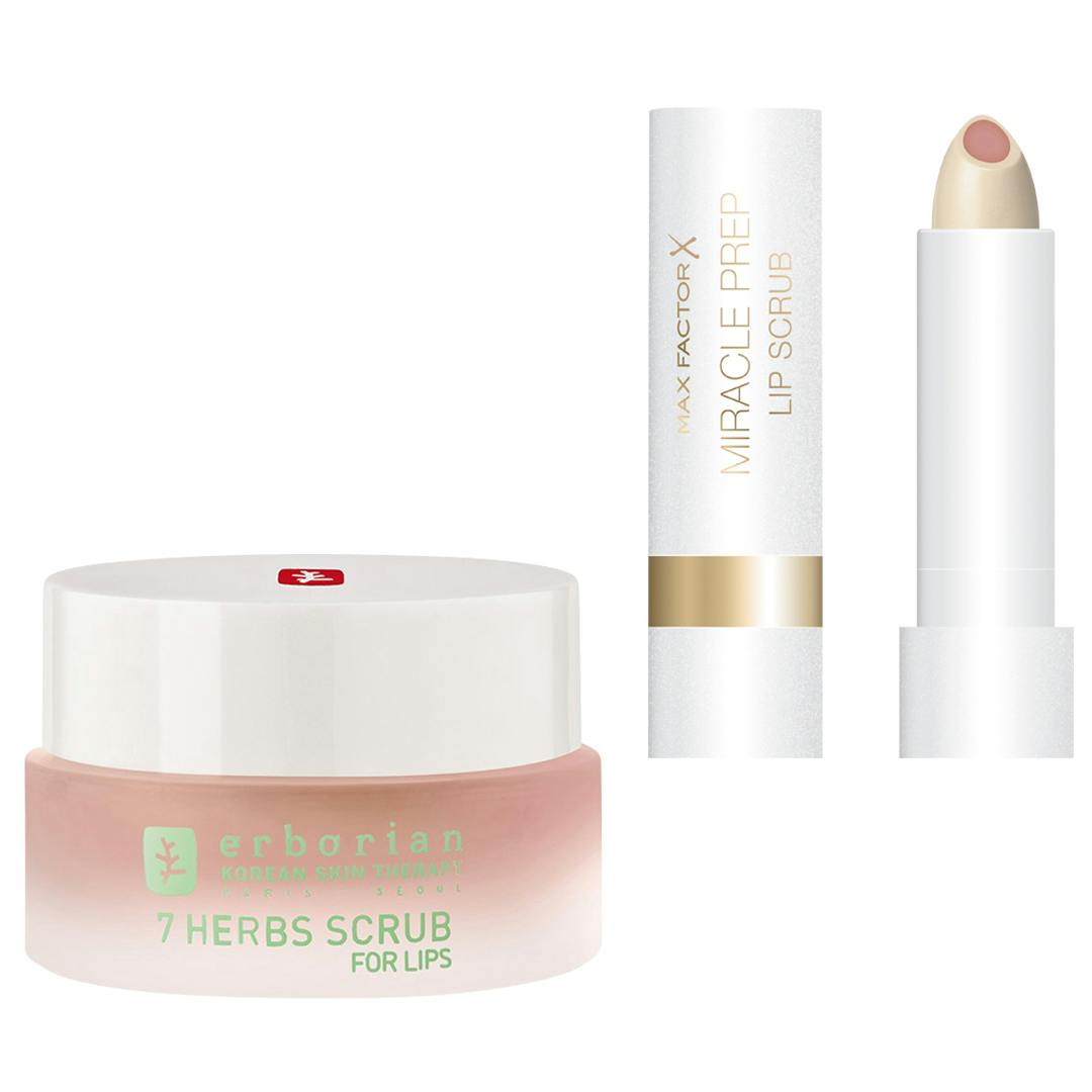 Sukkerkrystaller kombinert med sju forskjellige urter gjør en god jobb med å eksfoliere leppene dine. 7 Herbs Scrub For Lips fra Erborian. 7 ml, 239 kr. // En multitasker med en kjerne av fuktgivende candelilla, bivoks og jojobakjerneolje. Utenfor ligger en eksfolierende sukkerskrubb. Max Factor Miracle Prep Lip Scrub, 90 kr