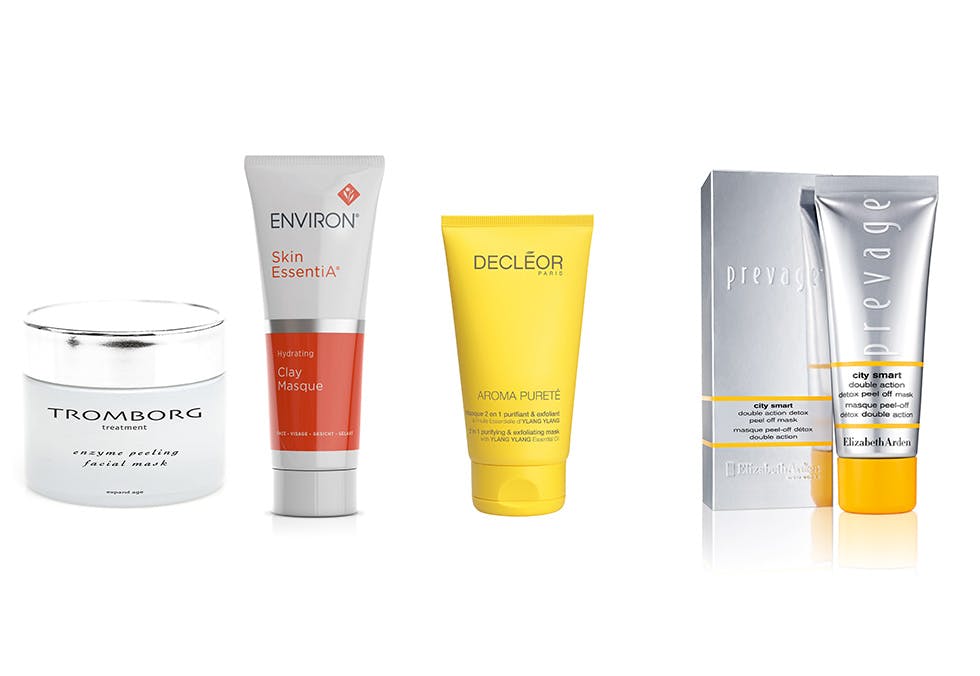 Enzyme Peeling Facial Mask fra Tromborg med eksfolierende grapefrukt-ekstrakt og organiske jojobakorn, 50 ml, 890 kr. Hydrating Clay Masque fra Environ skal gi fukt samtidig som fin leire virker rensende. 50 ml, 522 kr. Arome Pureté 2 in 1 Purifying & Exfoliating Mask fra Declèor renser og peeler med naturlige planteessenser. 50 ml, 375 kr. City Smart Double Action Detox Peel Off Mask fra Elizabeth Arden renser og minsker porene, 75 ml, 600 kr.
