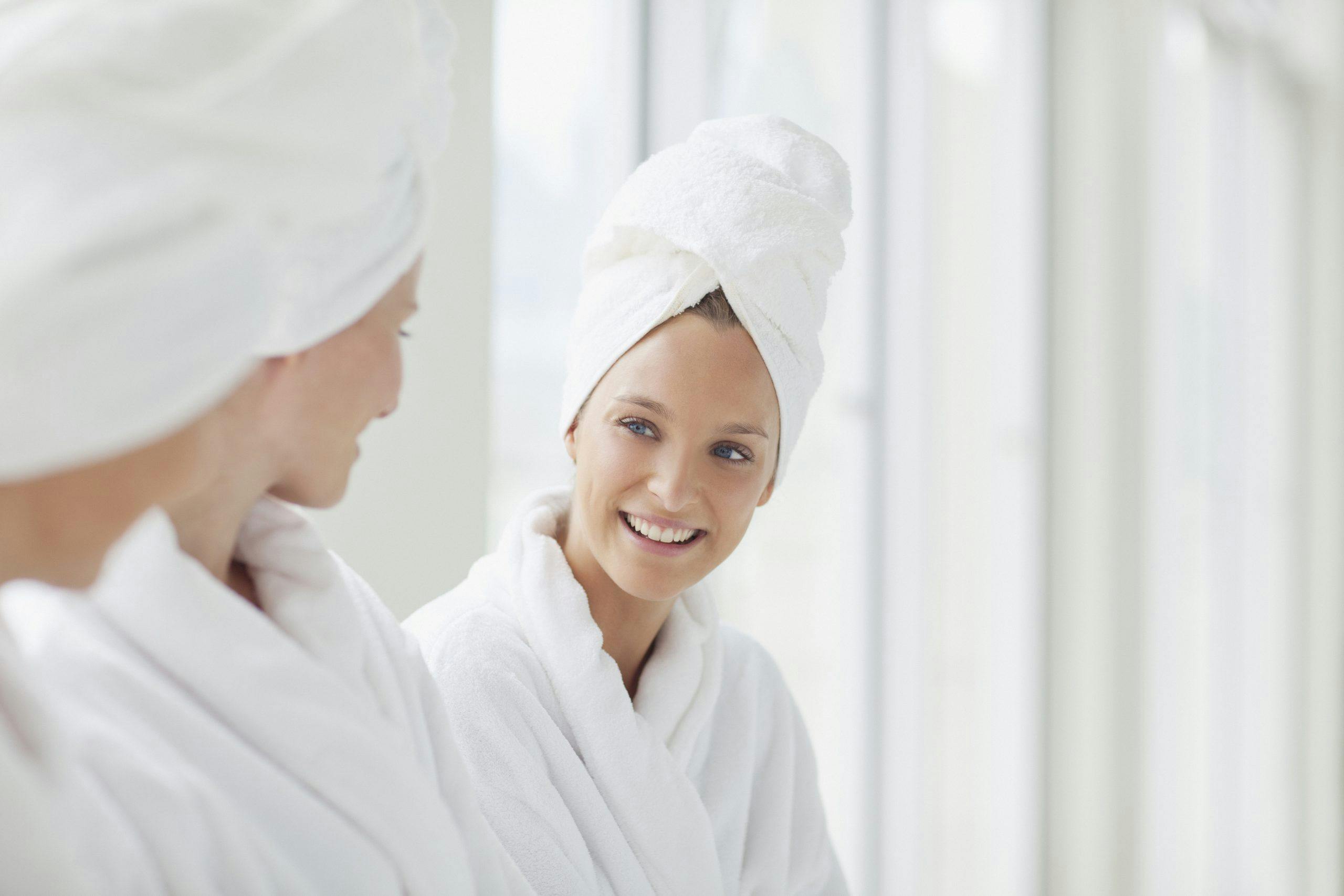 Etter dusj og hårvask frottérer du kroppen og håret med et godt håndkle. Massér en hårkur inn i håret, og gni den jevnt inn i hår og hodebunn. La kuren sitte i håret i noen minutter mens du smører inn en peelingkrem på kroppen eller skrubber lett med en peelinghanske så døde hudceller løsner.