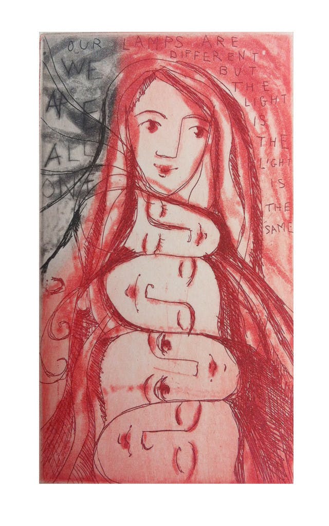 Jeg ble inspirert til å tegne bildet etter at jeg hadde lest en utrolig nydelig tekst av poeten Rumi, som handler om at vi alle kommer fra samme lyskilde. Og når vi er snille mot oss selv, og tar vare på oss selv – da er lyset i oss så sterkt at vi til og med kan være en lyskilde for andre.