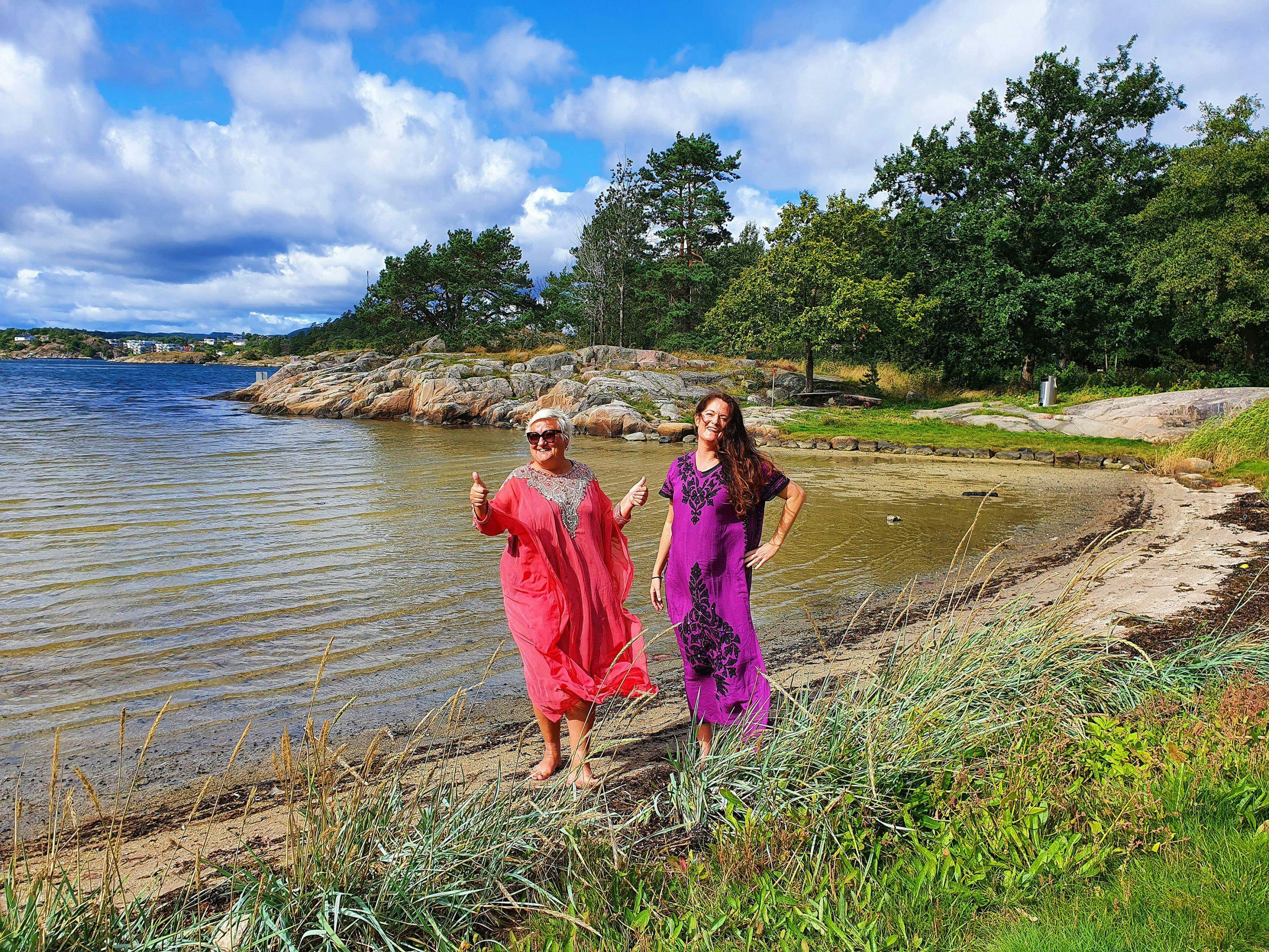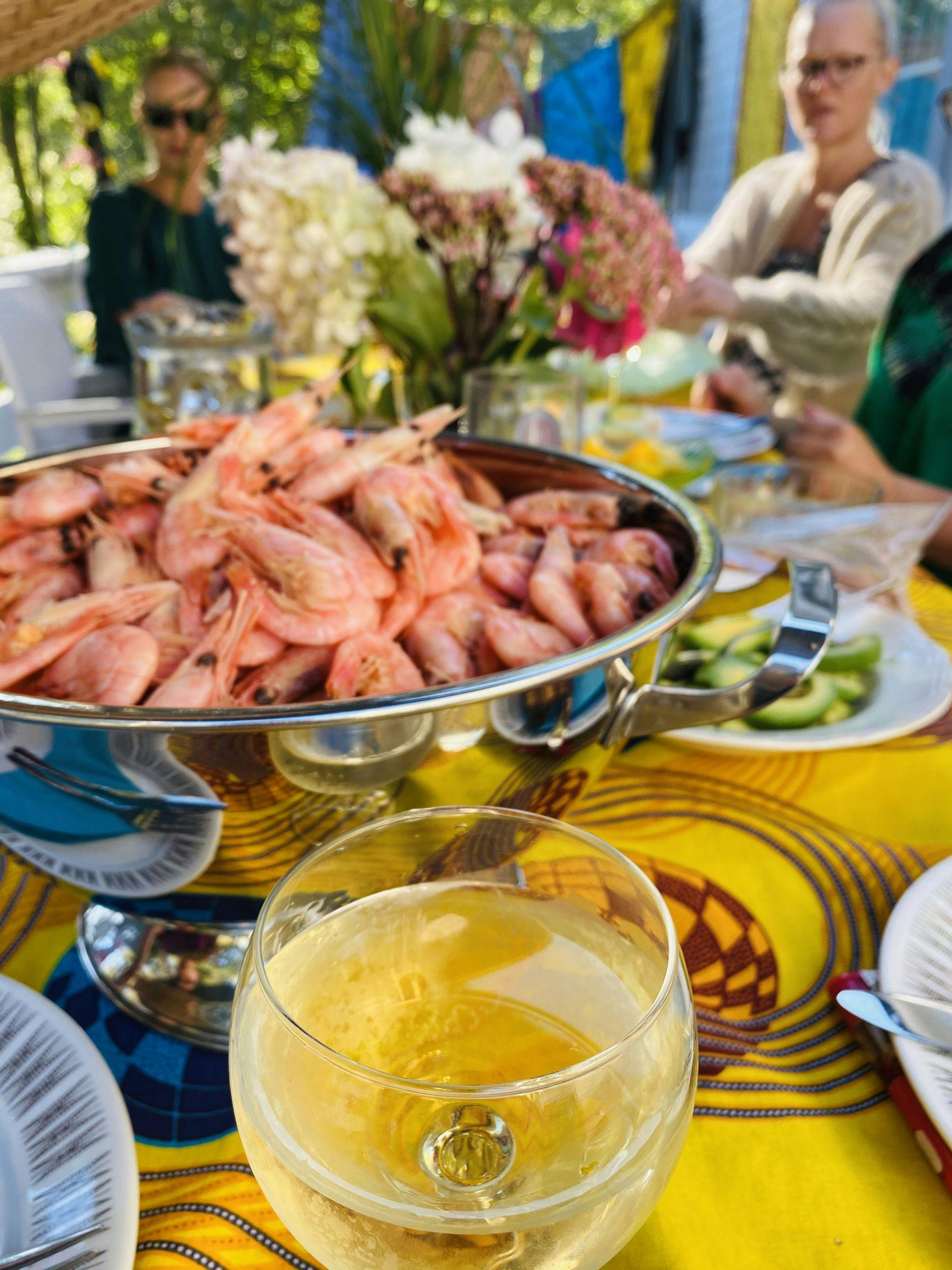Jeg kontaktet sporenstreks Merete, som også er fra Grimstad. Kunne vi få til litt Zanzibar på Sørlandet?Postens gamle feriekoloni eies i dag av Grimstad Bys Vel, så da leide vi stedet en helg og testet det ut ved å invitere noen lokale venninner på rekefest midt i skjærgården. Mer kresent skjærgårdspublikum enn en gjeng vaskeekte sørlendinger kunne vi ikke få, tenkte vi, og det ble en dag og helaften vi aldri vil glemme.