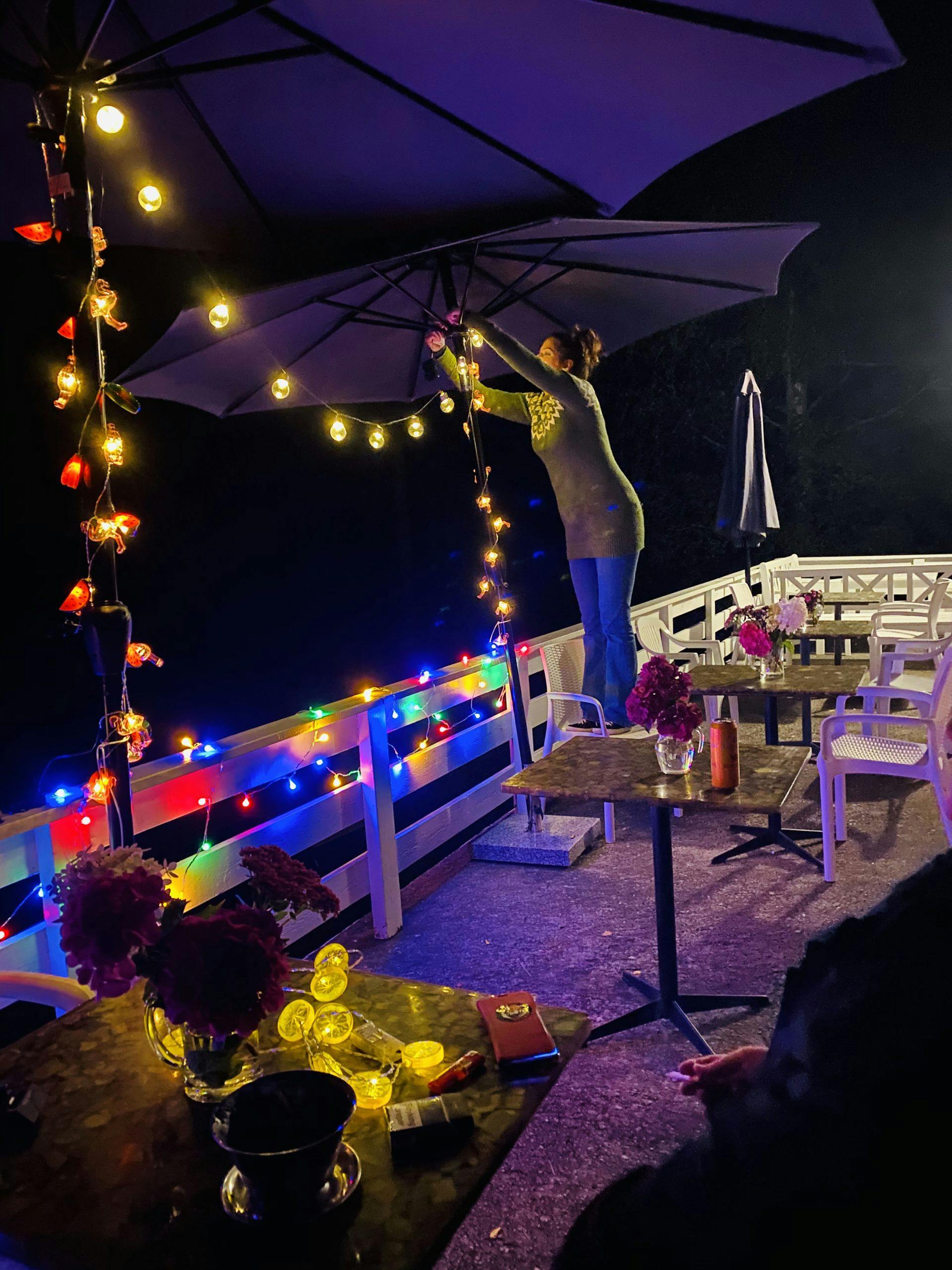 Etter endt fest var det ikke tvil i vår sjel. Vi måtte bare lage feriekoloni for voksne damer sommeren 2021. Vi kastet oss over alle de gode Grimstad-kontaktene vi har, og fikk Michael Valborgland, tidligere kjøkkensjef for Flying Culinary Circus, med bakgrunn fra både Statholdergaarden og Plah, til å sette sammen to fantastiske menyer basert på lokale råvarer, sammen med makker Ole Fredrik Ommundsen, som han blant annet har drevet Groos Sommerrestaurant i Grimstad med.